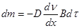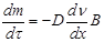 Скорость перемещения вещества пропорциональна градиенту концентрации и площади В , через которую происходит движение диффузионного потока, т.е.