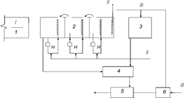 Рис.1. Схема противоточной каскадной водно-воздушной промывки протравленного рулонного металла: 1 – травильные ванны; 2 – ванны промывки холодной водой; 3 – ванны промывки горячей водой; 4 – сооружения очистки ПВ; 5 – выпарная установка; 6 – резервуар воды чистого оборотного цикла; I – протравленный рулонный металл; II – воздух; III – вода чистого оборотного цикла.
