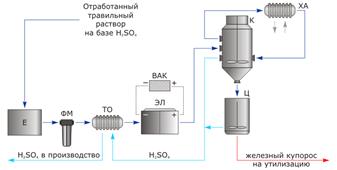Рис. 3. Технологическая схема и повторного использования кислых железосодержащих ПВ травильных отделений: