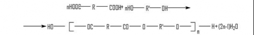 Каждый элементарный акт поликонденсации в процессе образования смол вызывается реакцией этерификации, на которой основано получение сложных эфиров. В общем виде реакцию получения полиэфирных смол можно написать следующим образом: