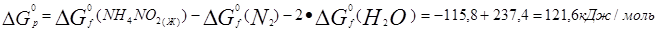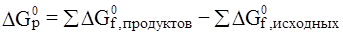 Изобарно-изотермический потенциал реакции рассчитывается так же, как и тепловой эффект реакции – по стандартным теплотам образования веществ: