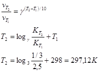 17. При температуре 298 К реакция заканчивается через 2,5 ч. Рассчитать, при какой температуре она закончится через 20 мин., если температурный коэффициент реакции равен 3.