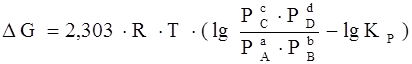 где Р А , Р В , Р С , РD – парциальные давления исходных веществ и продуктов реакции.