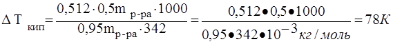 33. Эбулиоскопическая константа воды равна 0,512. Рассчитать, при какой температуре кипит 5 %-ный раствор сахарозы в воде.