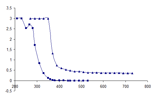 Таким образом, из представленных графиков видно, что эффективное значение рН = 8,34, процесс восстановления идет более эффективно. Максимум поглощения наблюдается на длине волны λ = 420 нм. По литературным данным, это соответствует поглощению серебряных частиц размером несколько нанометров [4]. Быстрый рост поглощения в максимуме полосы свидетельствует о формировании в системе новых частиц серебра данного размера.