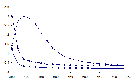 Было найдено [7], что при радиационно-химическом восстановлении ионов Ag+ в присутствии наночастиц гетерополисоединений в оптическом спектре возникают полоса золя металла с максимумом при 392 нм и полоса при 650 нм, обусловленная продуктом восстановления («синь»).