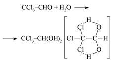Известно, что геминальные дигидроксипроиз-водные являются нестабильными соединениями – дегидратируясь легко превращаются в соответствующие альдегиды или кетоны. Хлоральгидрат является одним из немногих примеров, когда структура гем- диола является стабильной. И причину этого объясняют как сильным отрицательным индукционным эффектом (-I-эффект) трихлорметильной группы, так и наличием внутримолекулярных Н-связей: