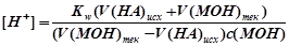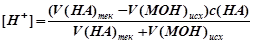 2. При титровании до ТЭ в растворе преобладают Н+ - ионы, недотитрованной НА, так как все добавляемые с титрантом ОН- - ионы связываются в воду: НА + МОН МА + Н2 О, поэтому с учетом разбавления титруемого раствора в ходе титрования