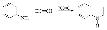 Индол извлекают из каменнноугольной смолы. Его можно получить при пропускании смеси паров анилина с ацетиленом через раскаленные трубки: