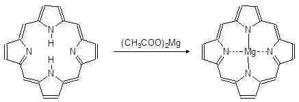 При нагревании порфиринов с ацетатами или хлоридами металлов в уксусной кислоте образуются комплексы: