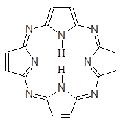 Тетраазапорфин содержит четыре атома азота вместо метиновых групп.