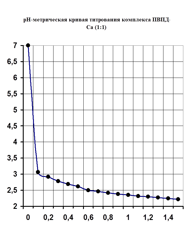 1) Методами рН-метрического титрования и вискозиметрии обнаружили и доказали комплексообразование в системе поливинилпирролидон-Са2+ .