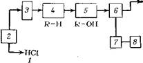Вещества разделяются на катионообменной колонке 4 по ионообменному механизму, попадают в десорбционную колонку 5 со смолой в ОН-форме, где происходит нейтрализация подвижной фазы и удаление электролита из элюента. Анализируемые вещества выходят из колонки 5 в деионизиванной воде и попадают в кондуктометрическую кювету 6. Сигнал с кондуктометра 7 поступает на самописец 8 или интегратор. На аналогичной установке анализируют анионы. Так как десорбционную колонку приходится часто регенерировать, отношение объемов, пропущенных через колонку 5, к объемам, допущенным через колонку 4, должно быть меньше или равно 1O. Предложений схемы разделения для ионной хроматографии и варианты заполнения разделительной и десорбирующей колонок.