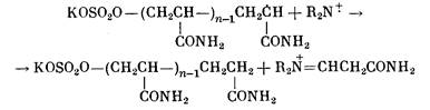 Катион R2 N=CHCH2 CONH2 по описанной выше схеме (1) превращается далее в енамин, вторичный амин и альдегид. Образование карбонильного соединения при полимеризации акриламида в присутствии системы ПСК — ТКА подтверждено нами экспериментально.