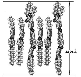 | Рис. 3. Объемная модель слоя индуцированного смектика А "ОФПБ – БКГФ" |