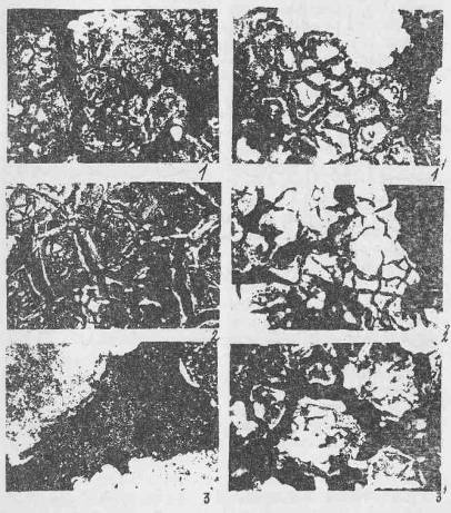 8.Результаты микроструктурных исследований позволили установить, что процесс роста фаз У-Си-0 и Са-У-Си-0 в толщину происходит путем последовательного послойного наращивания слоев и начинается в местах скопления дефектов. Увеличение длительности обработки в токе кислорода (выше 12 час), как и увеличение длительности предварительной термообработки с более 1 час.) приводит к укрупнению ячеек структуры и растрескиванию.