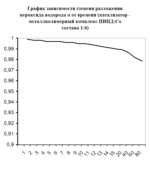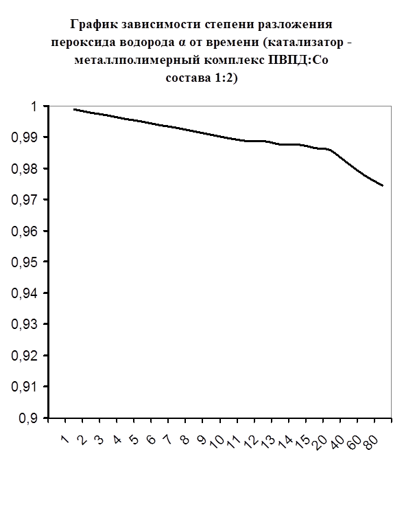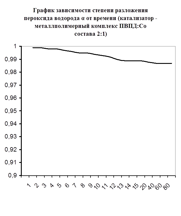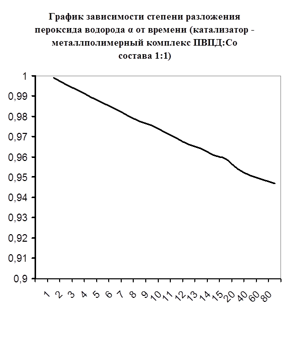 Каталазная активность мталлполимерного комплекса ПВПД:Cо2+ состава (1:6)