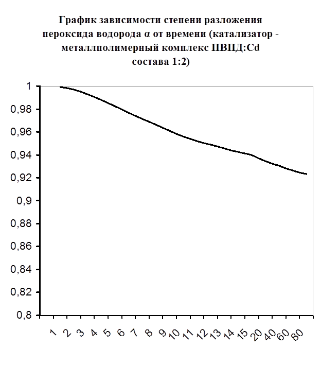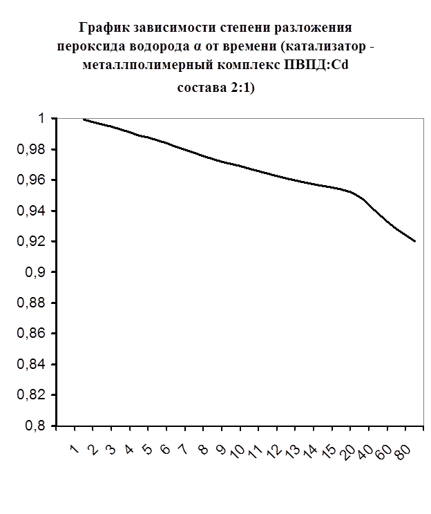 Каталазная активность мталлполимерного комплекса ПВПД:Cd2+ состава (1:2)
