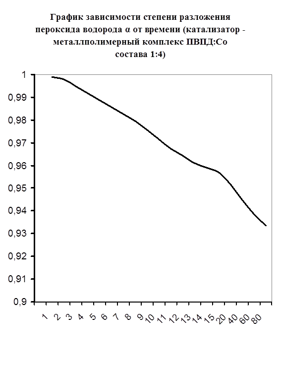 Каталазная активность мталлполимерного комплекса ПВПД:Cо2+ состава (1:4)