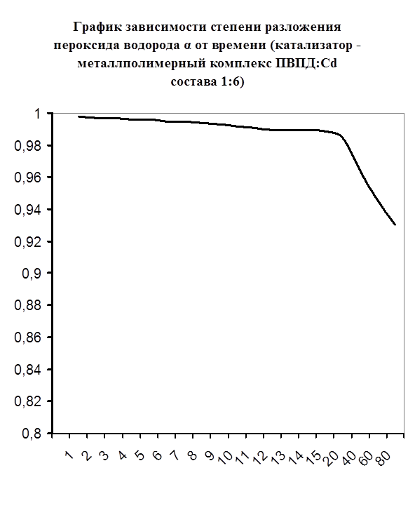 Каталазная активность мталлполимерного комплекса ПВПД:Cd2+ состава (1:6)