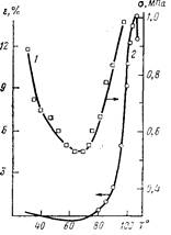 В интервале температур 60—70° на кривой а—Тнаблюдается плато, т. е. на этом участке оба процесса (падение и рост о) уравновешены.