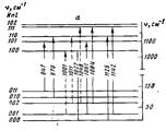 На рис. 3 показано отнесение максимумов полос поглощения vas Si—О—Si в низкотемпературном (—196°) спектре полисилоксановых пленок и схема соответствующих переходов; индексами N, п я I обозначены соответственно квантовые числа колебаний vas , бит. Так, согласно приведенной схеме, полоса поглощения при 1027 см-1 соответствует переходу из состояния, описываемого квантовыми числами ООО, в состояние, где возбуждаются только валентные асимметричные колебания мостика Si—О—Si. Полоса поглощения при 1142 см-1 связана с возбуждением как валентных, так и деформационных колебаний силоксанового мостика.