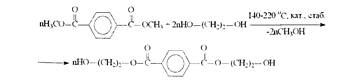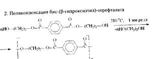 - взаимодействием карбоксильной и гидроксильной групп двух макромолекул с образованием сложноэфирной связи и выделением этиленгликоля.