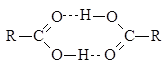 Гидроксильная группа в карбоновых кислотах образует водородные связи, причем более прочные, чем в спиртах. Кроме того, в карбоновых кислотах в образовании водородной связи может участвовать карбонильная группа. В твердом и жидком состоянии кислоты существуют в основном в виде димеров:
