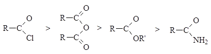 Реакционная способность ацильных соединений зависит от основности уходящей группы. По реакционной способности их можно расположить в следующий ряд: