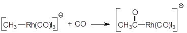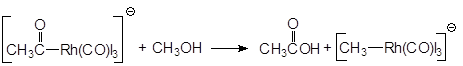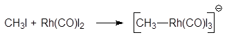 Б. Карбонилирование метанола. Разработан способ получения уксусной кислоты из метанола и окиси углероа в присутствии небольшого количества родия (III), HI и H2 O.