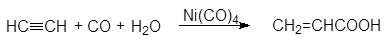 Аналогичная реакция с ацетиленом приводит к образованию акриловой кислоты.