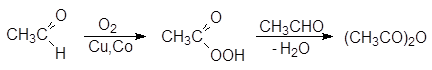 Уксусный ангидрид в промышленности получают окислением уксусного альдегида