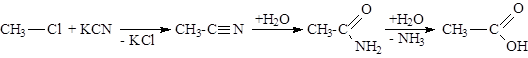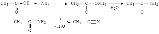 Взаимодействие с аммиаком с образованием амидов и нитрилов: