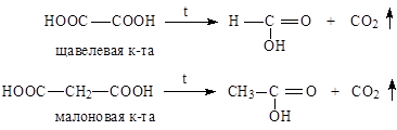 Пиролиз щавелевой и малоновой кислот: