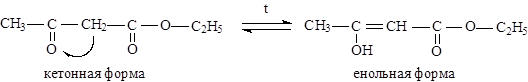 Таутомерия – динамическая изомерия: с повышением температуры увеличивается содержание енольной формы:
