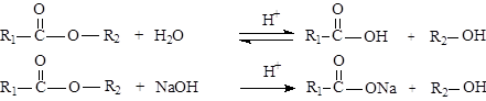 Гидролиз сложных эфиров - см. тему «Химические свойства одноатомных спиртов».