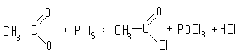 Действие галоидных соединений фосфора . При действии галоидных соединений фосфора на органические кислоты гидроксильная группа карбоксила замещается на галоид: