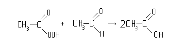 Далее надуксусная кислота взаимодействует с еще одной молекулой ацетальдегида, и в результате образуются две молекулы уксусной кислоты: