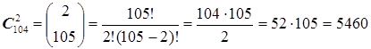 Максимальное число возможных в природе различных химических связей между парами атомов AB, AC, ... MN,... представим как число всех парных сочетаний из 105 атомов, образующих Периодическую Систему Менделеева.
