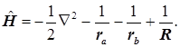 Составим молекулярный гамильтониан системы 3-х частиц. В атомных единицах он имеет вид: