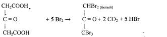 Затем ацетондикарбоновая кислота бромируется и переходит в пентабромацетон: