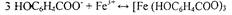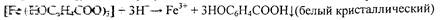 6С6 Н5 СОО- + 2 Fe3+ + 10Н2 О - (C6 H5 COO)3 Fe-Fe(OH)3 -7H2 O + 3 С6 Н,СООН основной бензоат железа (III) розово - желтого цвета