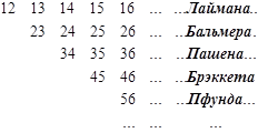 Упорядоченная сводка характеристик системы, которые зависят от пар уровней, всегда представляет собой двумерную матрицу. Её структура проста и совпадает с принципом нумерации её элементов :