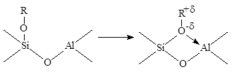 Кристаллическая структура цеолитов характеризуется сквозными порами одинакового диаметра (0.75 – 1.0 нм), превышающими размеры многих молекул углеводородов. При замене части ионов Na+ на ионы NH4 + и последующей прокалки на поверхности цеолита образуются сильные протонные центры