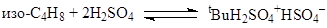 Реакции алкилирования – процессы обратные крекингу – занимают важное место в нефтехимии и в органическом синтезе. Реакции алкилирования используют для получения ценных компонентов моторных топлив, повышающих их октановые числа. Для получения алкилатов используют реакции алкилирования парафинов олефинами. Так, изобутан алкилируют изобутиленом и смесью изомерных бутиленов, а также пропиленом. Реакцию проводят в двухфазной системе – концентрированная H2 SO4 (90 – 97%) - углеводороды в присутствии ПАВ (R4 N+ X– , цетиламин, октиламин). Процесс является цепным и включает следующие типичные для кислотного катализа стадии. В концентрированных кислотах сольватация карбкатиона осуществляется молекулой кислоты