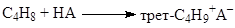 Процессы алкилирования катализируются и другими кислотами (CF3 SO3 H, HF). В системе углеводород-HF-1%H2 O процесс алкилирования протекает эффективнее и селективнее. Октановые числа алкилатов достигают 92 – 95. Предложен интересный механизм алкилирования изобутана пропиленом в присутствии HF.