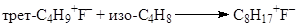 Сольватированный t Bu+ взаимодействует со второй молекулой олефина с образованием димерного карбкатиона. Для упрощения изобразим схему реакций с участием свободных R+ :