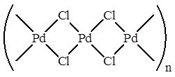 Рассмотрим, например, Вакер-процесс (окисление этилена в ацетальдегид), который протекает в присутствии катализатора PdCl2 /CuCl2 . На самом деле PdCl2 является линейным полимером, в котором атомы металла связаны хлоридными мостиками: