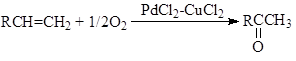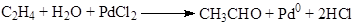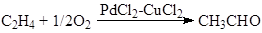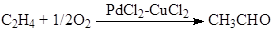 "Вакер"-процесс. Реакция окисления олефинов до карбонильных соединений была открыта практически одновременно в Германии (группа доктора Юргена Смидта в фирме "Consortium für Electrochemie") и И.И.Моисеевым, М.Н.Варгафтиком и Я.К.Сыркиным в СССР (МИТХТ им. М.В.Ломоносова) в 1957 – 1959 гг. Реакция протекает в воде или водно-органических растворах комплексов Pd(II) и Cu(II) при атмосферном давлении и температурах 70 – 95оС, например, синтез ацетальдегида: