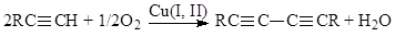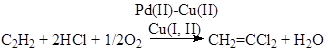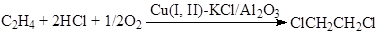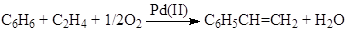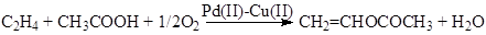 была открыта в МИТХТ им. Ломоносова в 1960 г. Реакция осуществляется в растворах солей PdCl2 -CuCl2 и Cu(OAc)2 в уксусной кислоте в присутствии NaOAc. Температура процесса 110 – 130о С и давление 3.0 – 4.0 МПа. Селективность по этилену – 83%. Кинетическое уравнение получено Моисеевым и Беловым в системе, не содержащей CuCl2 (16)
